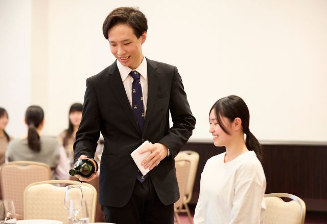 実際のホテルの宴会場で学生が企画したレストランサービスをおこなう国際ホテル科の卒業制作。2年間の学びを詰め込んだ集大成として相応しい催しです。これまでお世話になった方々に感謝の気持ちを込めて、おもてなしをします。