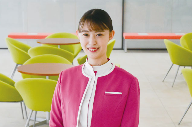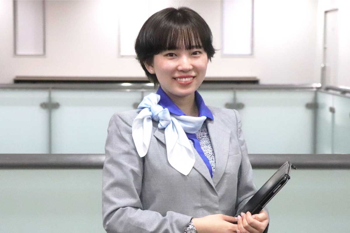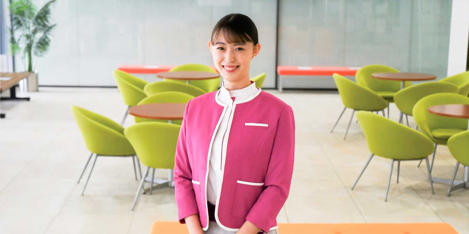 限られた時間でお客さまのリクエストにお応えし、さらに他の客室乗務員と協力してフライトを作り上げていく過程にやりがいを感じています。特にチームワークを発揮して業務に取り組むことで、お客さまにより良いサービスや快適な空間を提供できる点に魅力を感じています。また、お客さまから感謝のお言葉をいただいた時にはとても嬉しくやりがいを感じます。