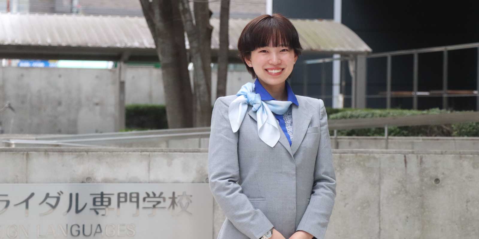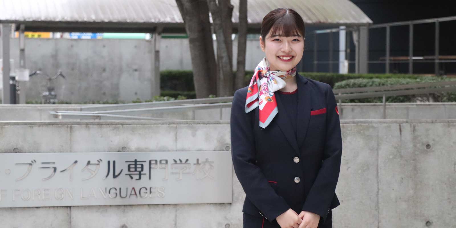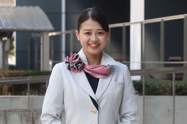 本校では、どんな時も学生の可能性を信じて応援し続けてくださる先生方、全力で切磋琢磨し合える仲間に出会うことができます。この環境だったからこそ客室乗務員の夢を叶えることができ、さらに学校生活を通して理想の女性像にも近づくことができました。