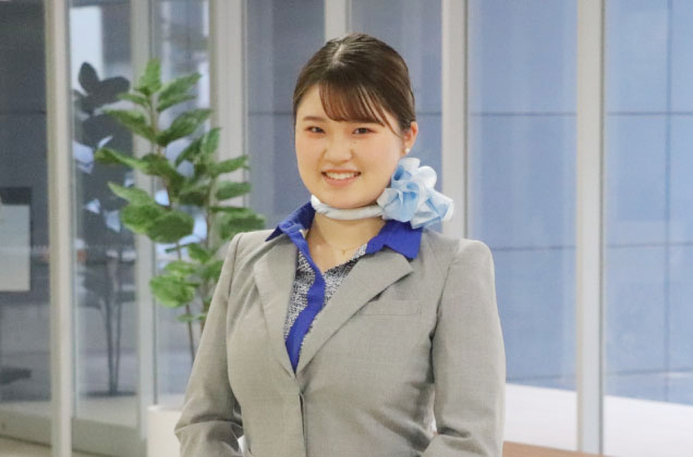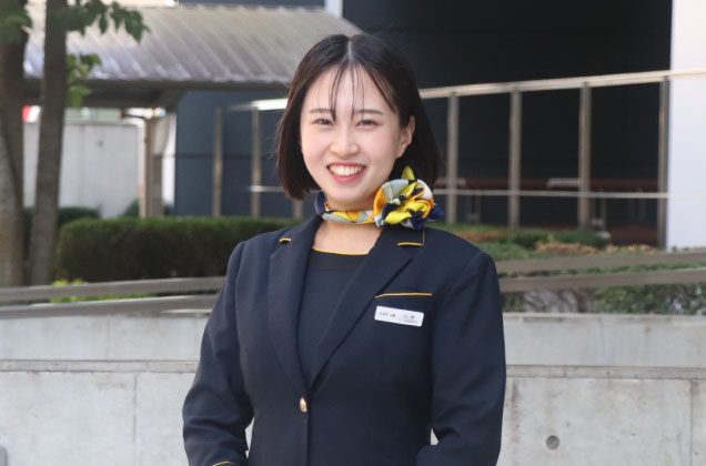 オープンキャンパスに足を運んだ際、夢に向かって輝く先輩方の姿を見て圧倒されました。当時抱いていた夢に対する不安や悩みを、先生方や先輩方が親身になって聞いてくださり、夢を諦めない気持ちを持つことが出来ました。また国際エアライン科のチームワーク力も感じ、私もチームワーク力を磨きながら就職活動を行いたいと思い入学を決めました。