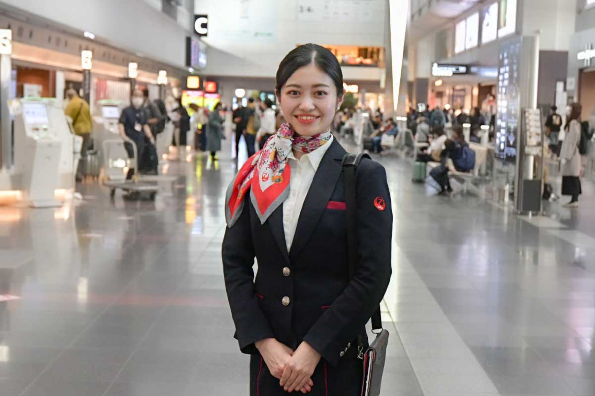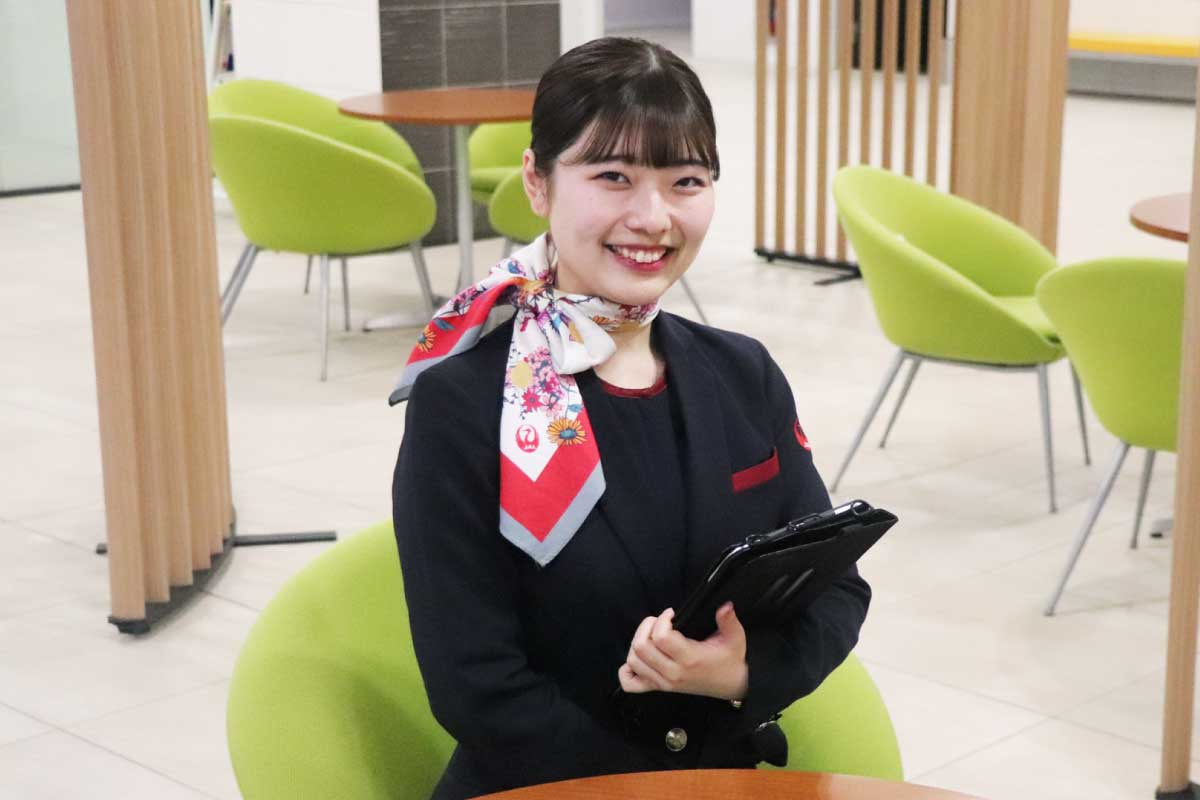 私が思うJALの魅力は「人のあたたかさ」です。採用時にお世話になった先輩社員がまさにそれを体現しており、入社時からの憧れでした。その方に一歩でも早く近づけるよう、一緒に働く仲間を大切に思いやり、仲間からだけでなくお客さまからも信頼していただける客室乗務員をめざします。