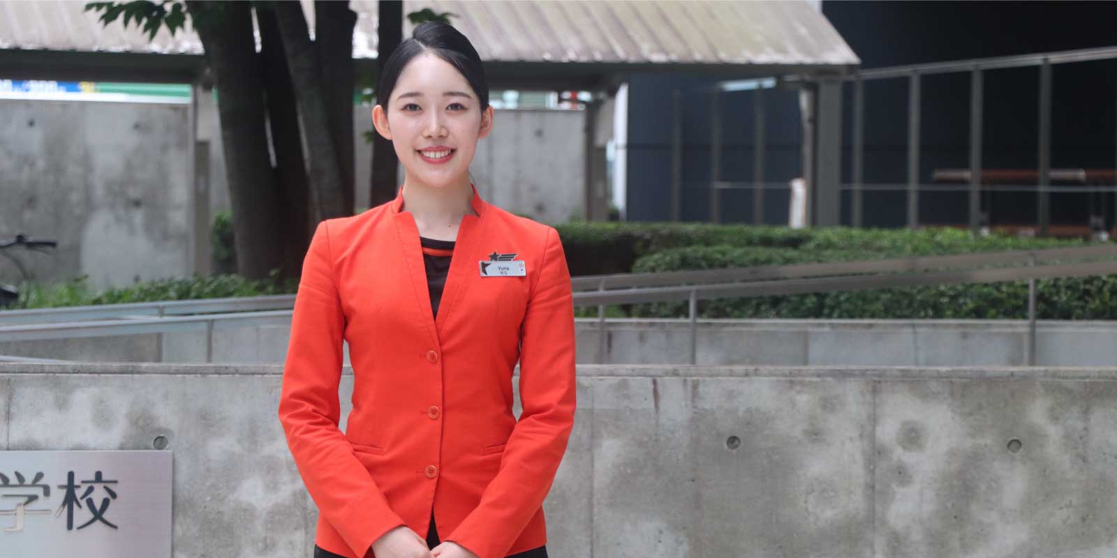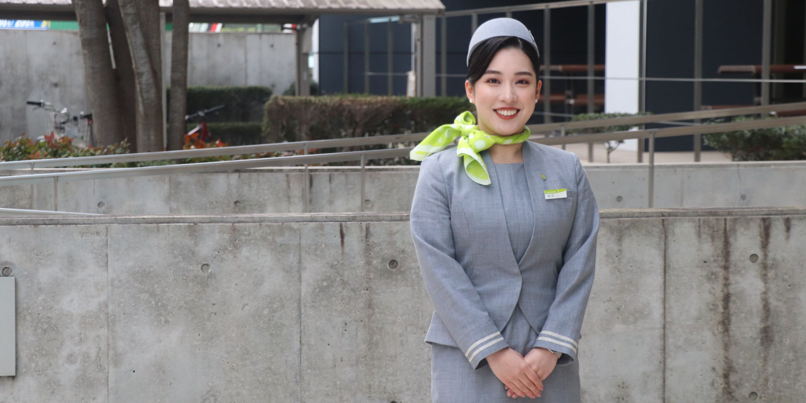 CA(客室乗務員)という夢を叶える一番の近道だと思ったからです。就職実績はもちろん、オープンキャンパスでお会いした先輩方の凛とした輝く姿に、強い衝撃と憧れを感じたのを覚えています。ここでなら自分も2年間でなりたい自分になれるということをオープンキャンパスで確信しました!