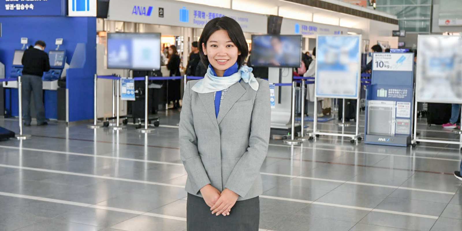 まず、大好きで学び続けてきた英語を使って、自分らしく親しみやすい接客をし、世界中のお客様の笑顔を見ることができるところが、私にとってグランドスタッフの仕事の一番の魅力です。日々の業務やお客様との出会いを通して、自分が日々成長し続けていることを実感します。