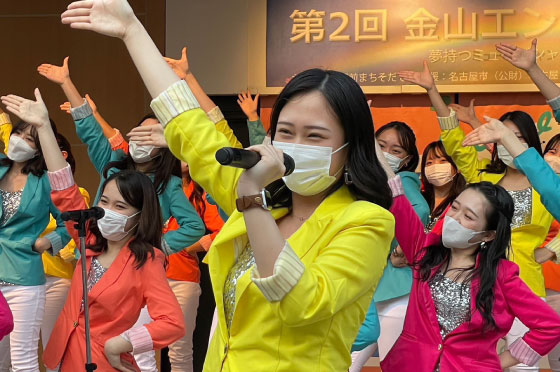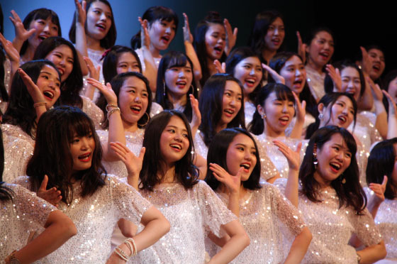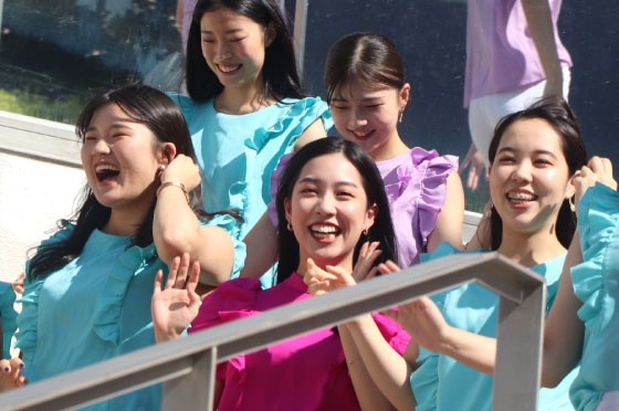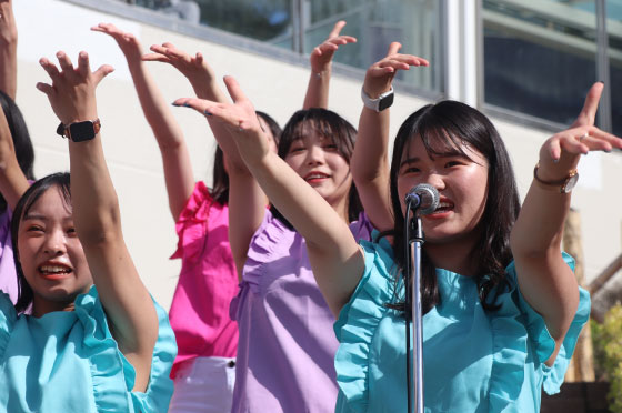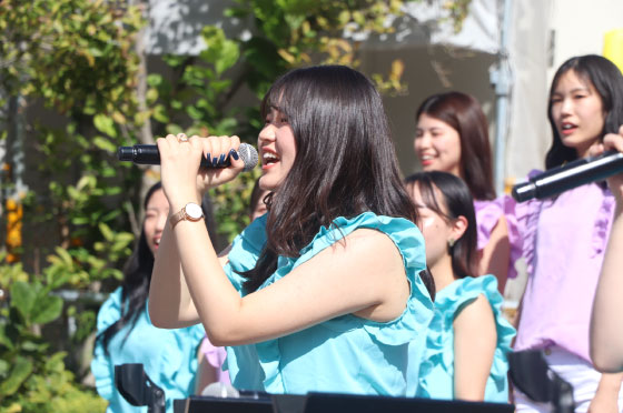 国際エアライン科の歌とダンスのパフォーマンスサークル「青春ガールズクワイア」の活動です。「パワフル・チアフル・ハートフル」というサークルのモットーは、私を奮い立たせてくれる言葉でもありました。