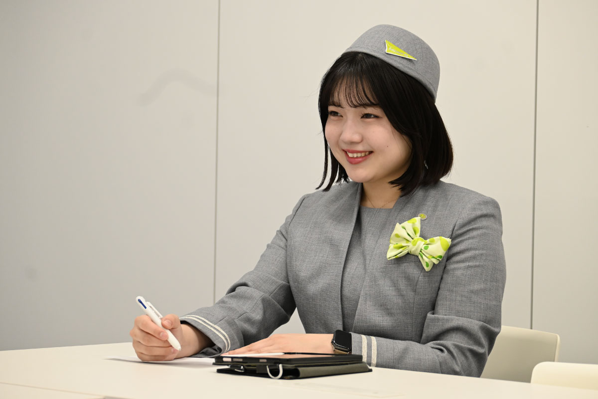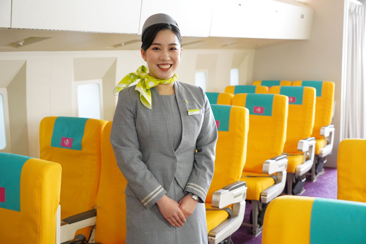 限られた時間と空間の中で、LCCならではの工夫や独創性を発揮し、いかにお客様一人ひとりに寄り添ったサービスができるかということを考えながら、日々のフライトに臨んでいます。