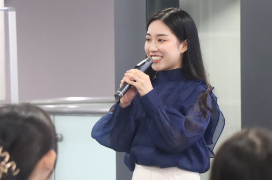 授業でアナウンスを行う機会があったことから、その練習が日々のアナウンスで活かされています。また学生時代に青春ガールズクワイアの活動から学んだ積極性やコミュニケーション力が活かされ、先輩や上司からお褒めの言葉をいただくことがあります。名外専では英語の勉強を重点的に行うことができるため、将来的にも役に立ちます。