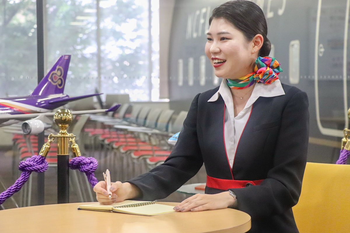 学生時代、客室乗務員になりたい気持ちは大きい反面、実際に夢を実現して働いている自分が全く想像できませんでした。夢を叶えるには、まだまだやるべきことがたくさんあると先生方に教えていただき、それがとても大きな「そびえ立つ山」のように思え、乗り越えていけるのか不安に思ったからです。