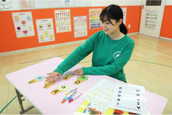 毎月レッスンテーマが異なるので、必要なフラッシュカードや装飾の準備をします。また、前期・後期と教材が変わるので教材の準備等をおこないます。【保護者対応】